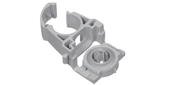 Kunststoffhalter für Kabel- und Leerrohrbefestigung.